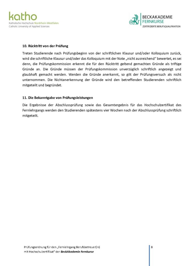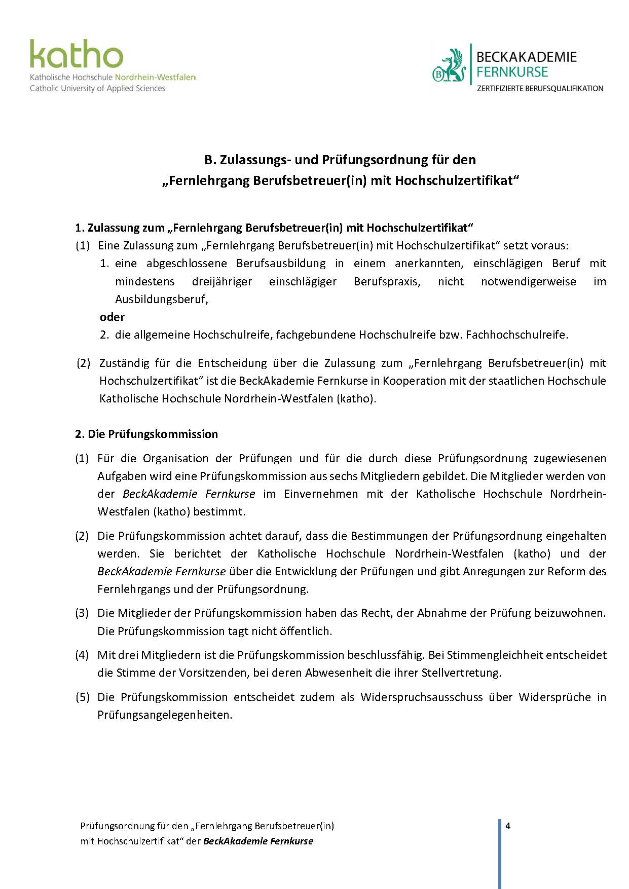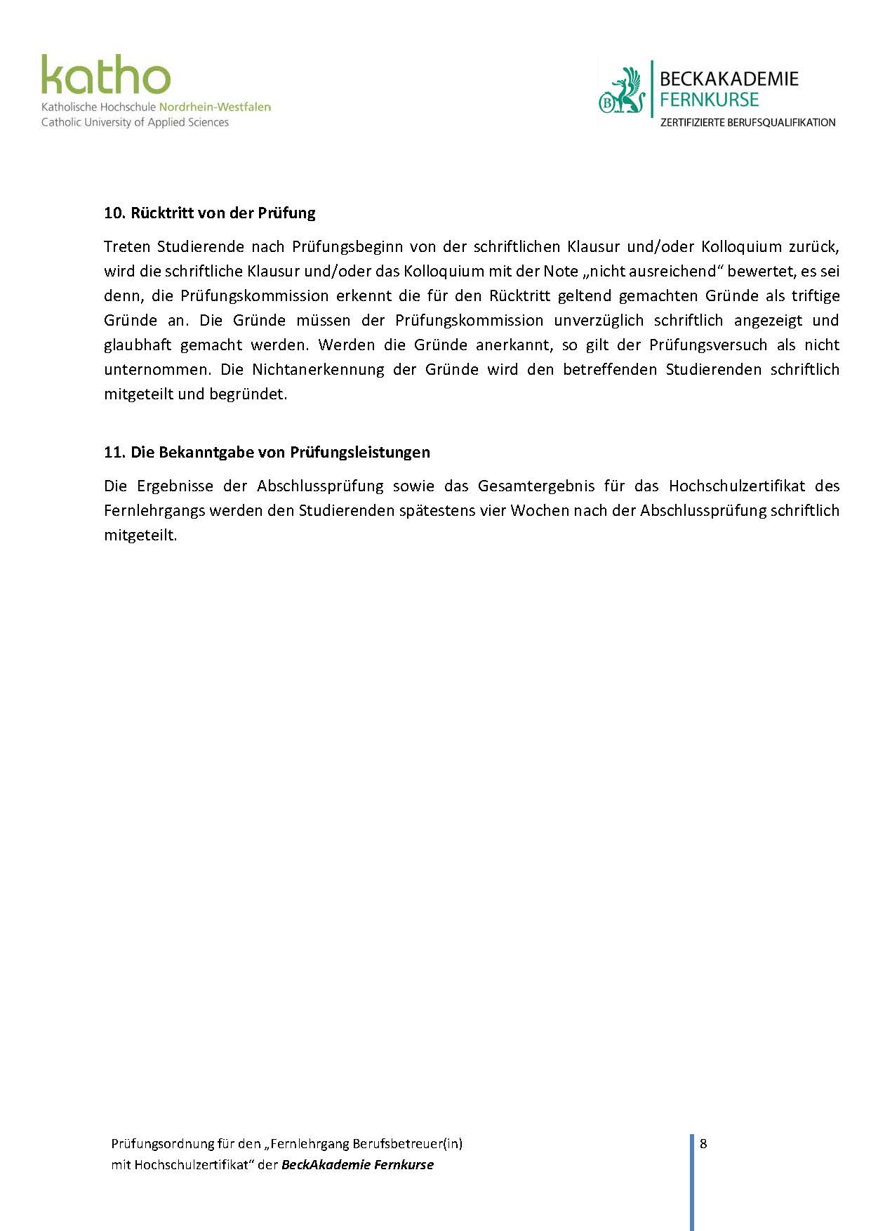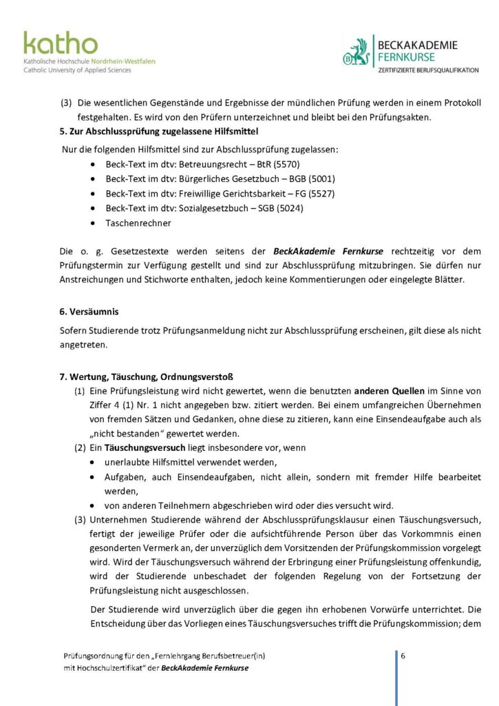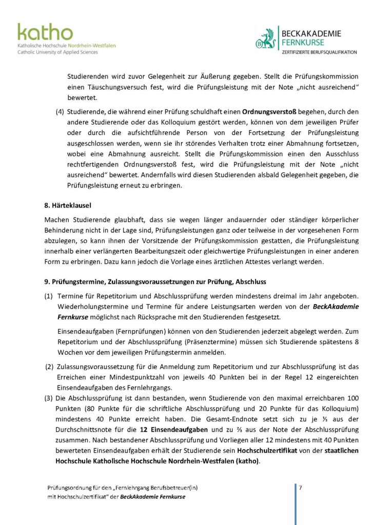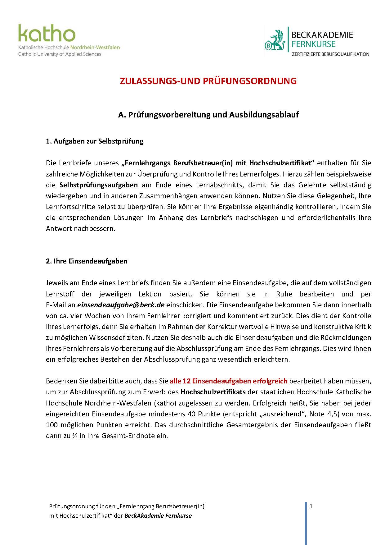 Prüfungsordnung Fernlehrgang Berufsbetreuer(in) mit Hochschulzertifikat