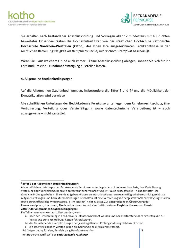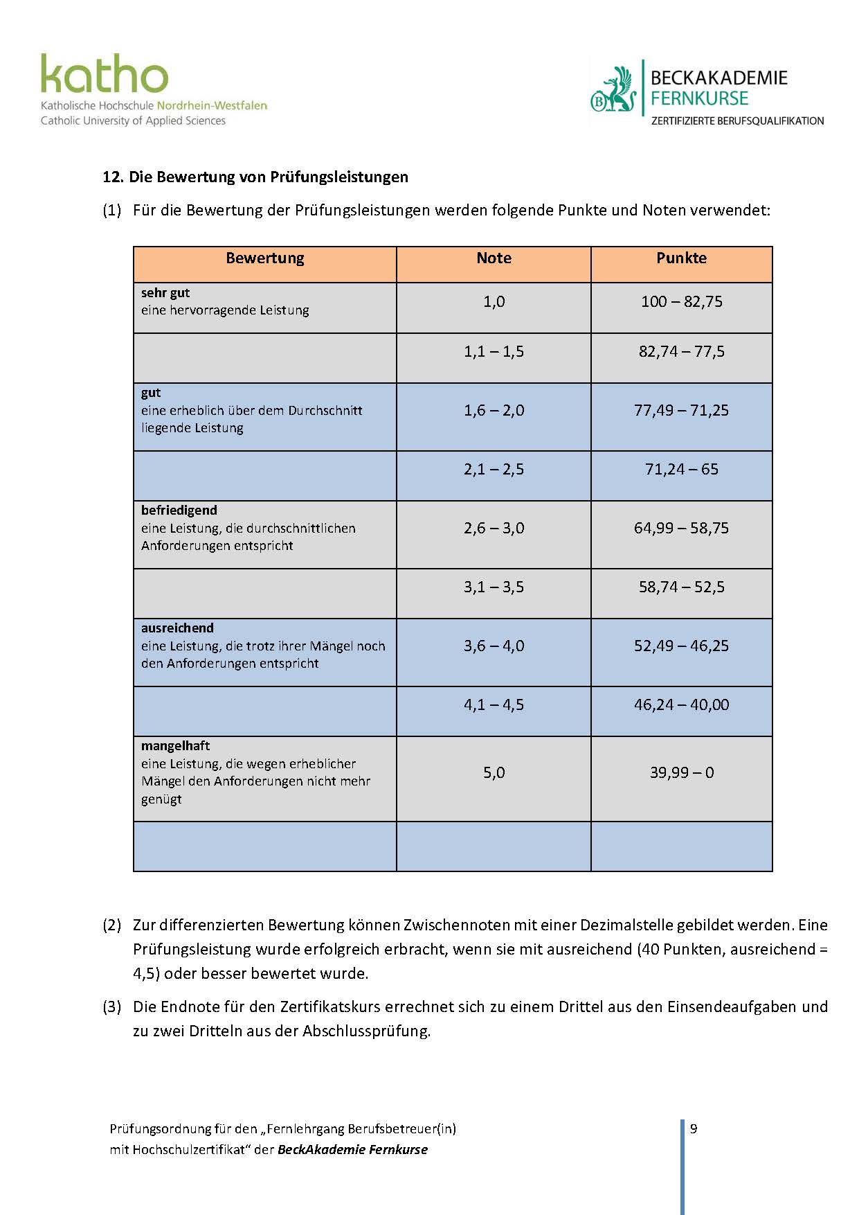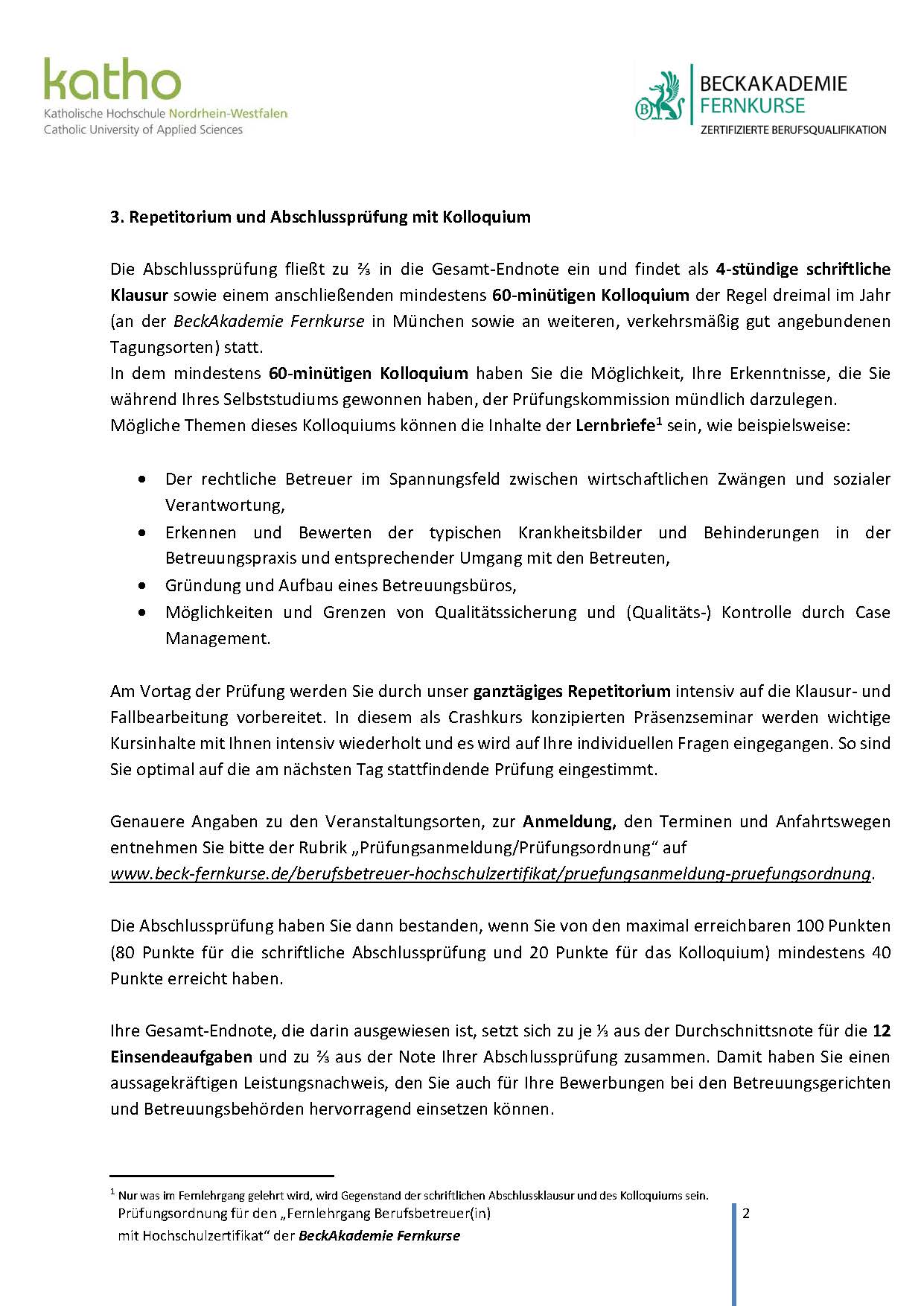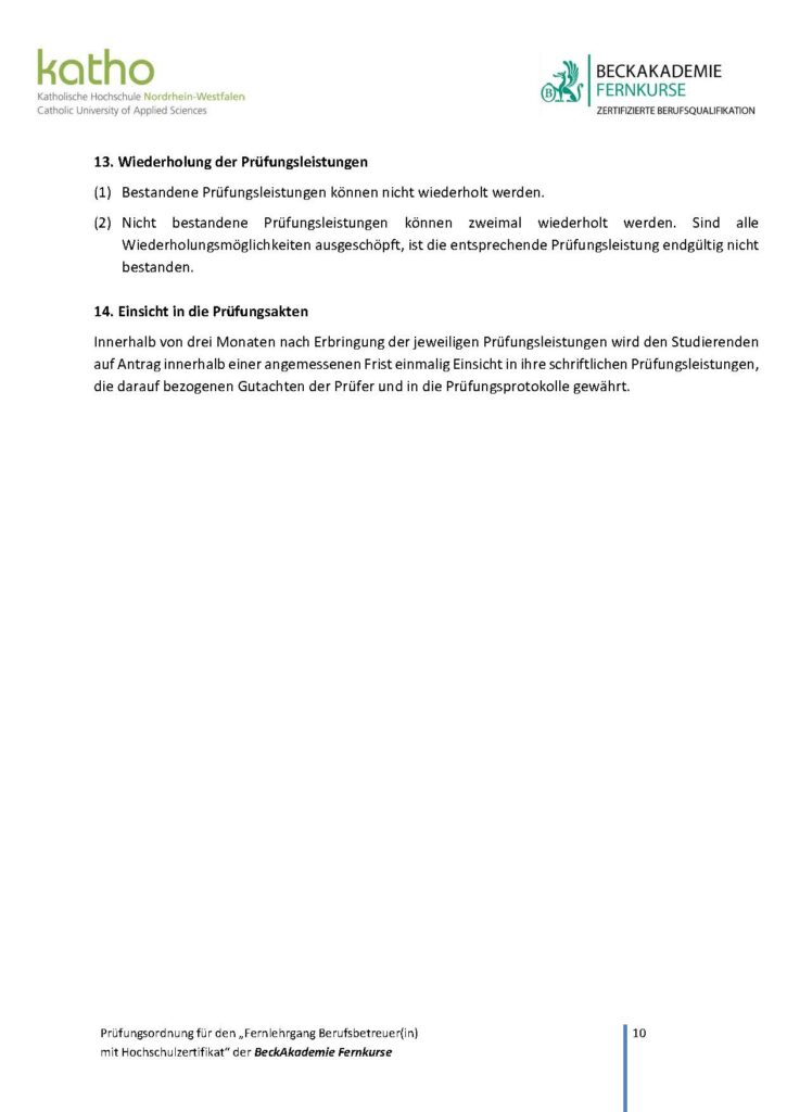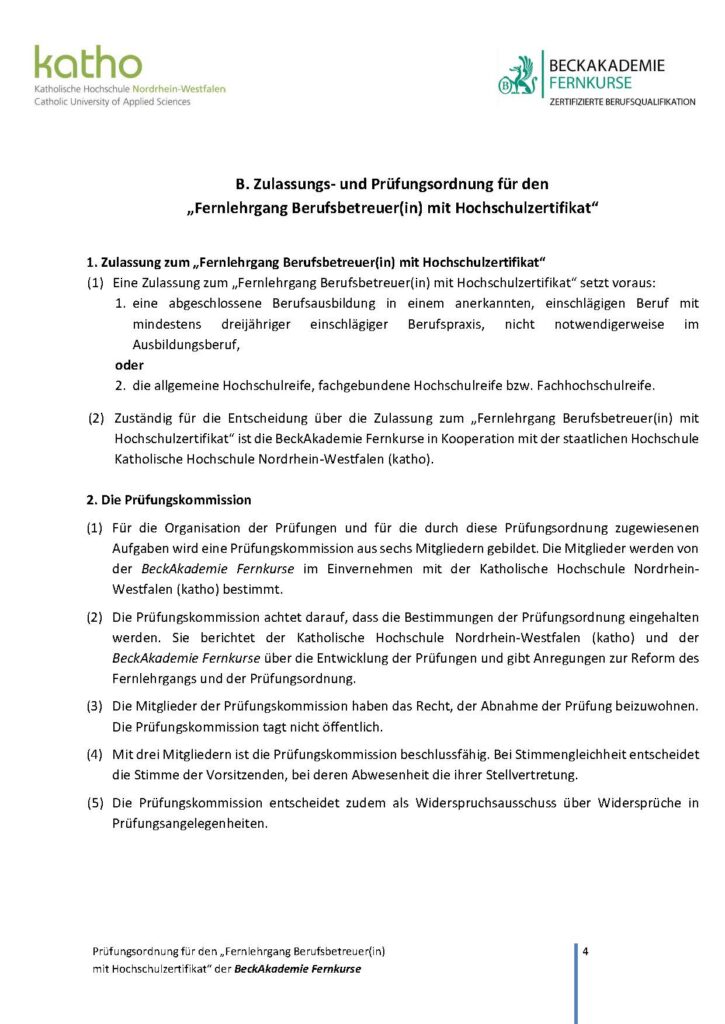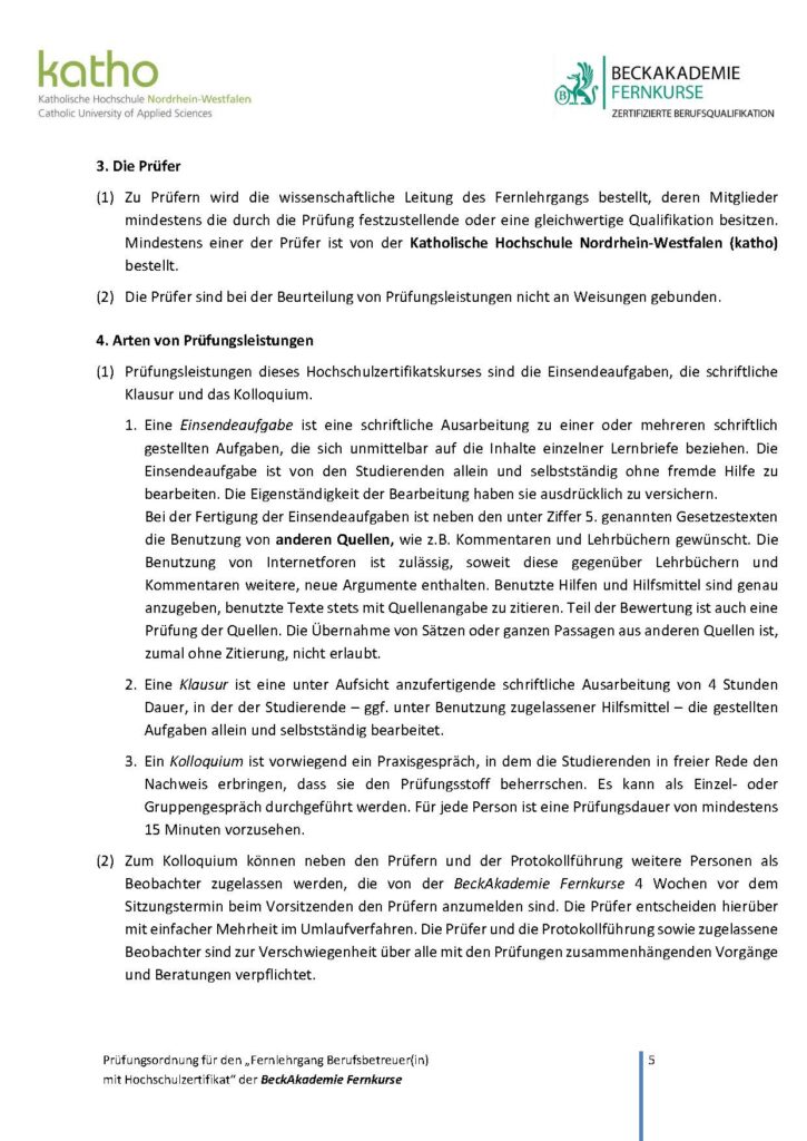 Prüfungsordnung Fernlehrgang Berufsbetreuer(in) mit Hochschulzertifikat